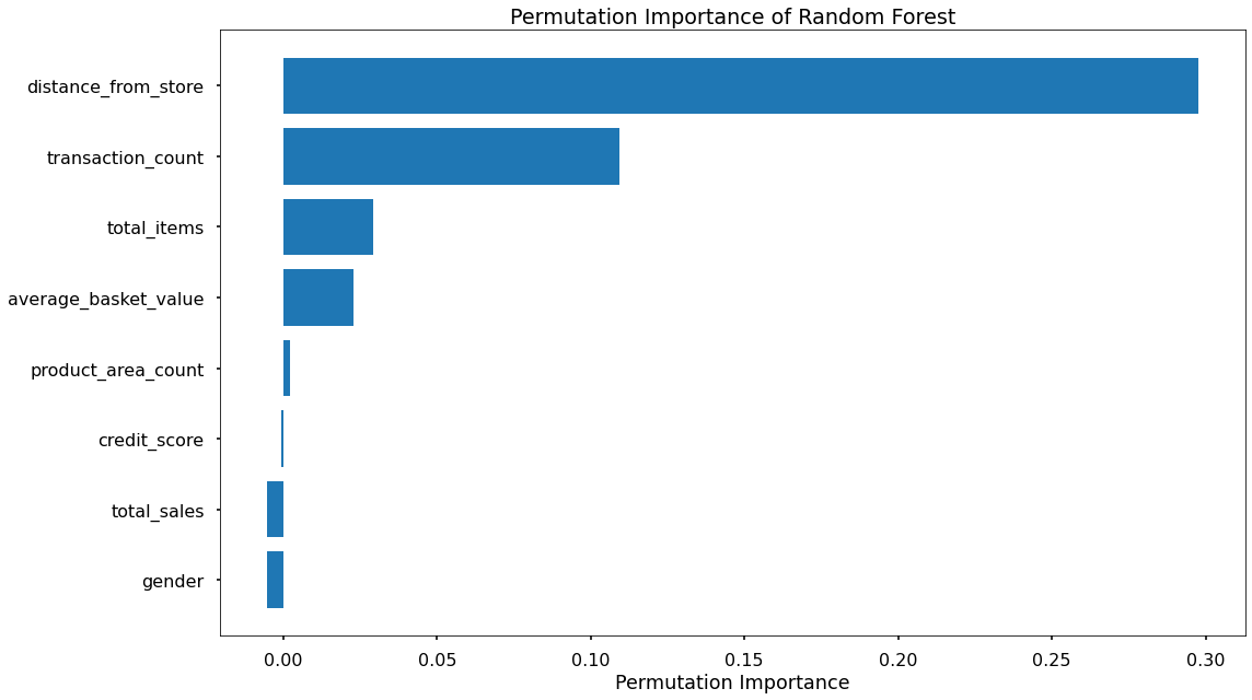 Based upon these, the chosen the model is the Random Forest as it was a) the most consistently performant on the test set across classication accuracy, precision, recall, and f1-score, and b) the feature importance and permutation importance allows the client an understanding of the key drivers behind delivery club signups.